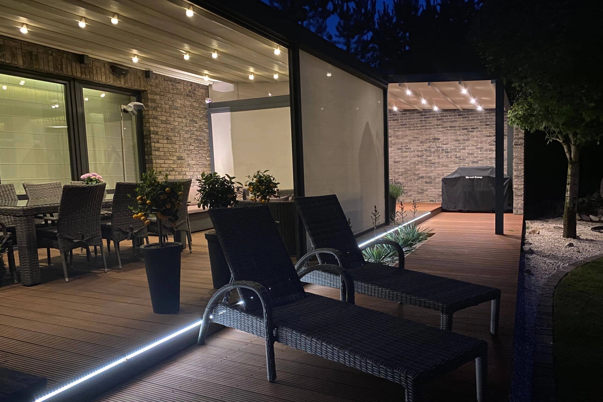 Bei Lumora in Berlin gestalten wir Außenbereiche genau nach Ihren Vorstellungen – individuell, stilvoll und funktional. Ob hochwertige Materialien, harmonische Farbwelten oder modernste Technik – wir setzen Ihre Ideen um, nach Maß und ohne Kompromisse. Von stimmungsvoller RGB-Beleuchtung über integrierte Solarsysteme bis hin zu Heizstrahlern: Alles lässt sich komfortabel smart steuern. Unsere Terrassenüberdachungen und Outdoor-Lösungen verbinden Design, Komfort und innovative Technik. Jede Konstruktion wird präzise auf Ihre Maße gefertigt, sodass Ihre Terrasse nicht nur perfekt passt, sondern auch optisch beeindruckt.