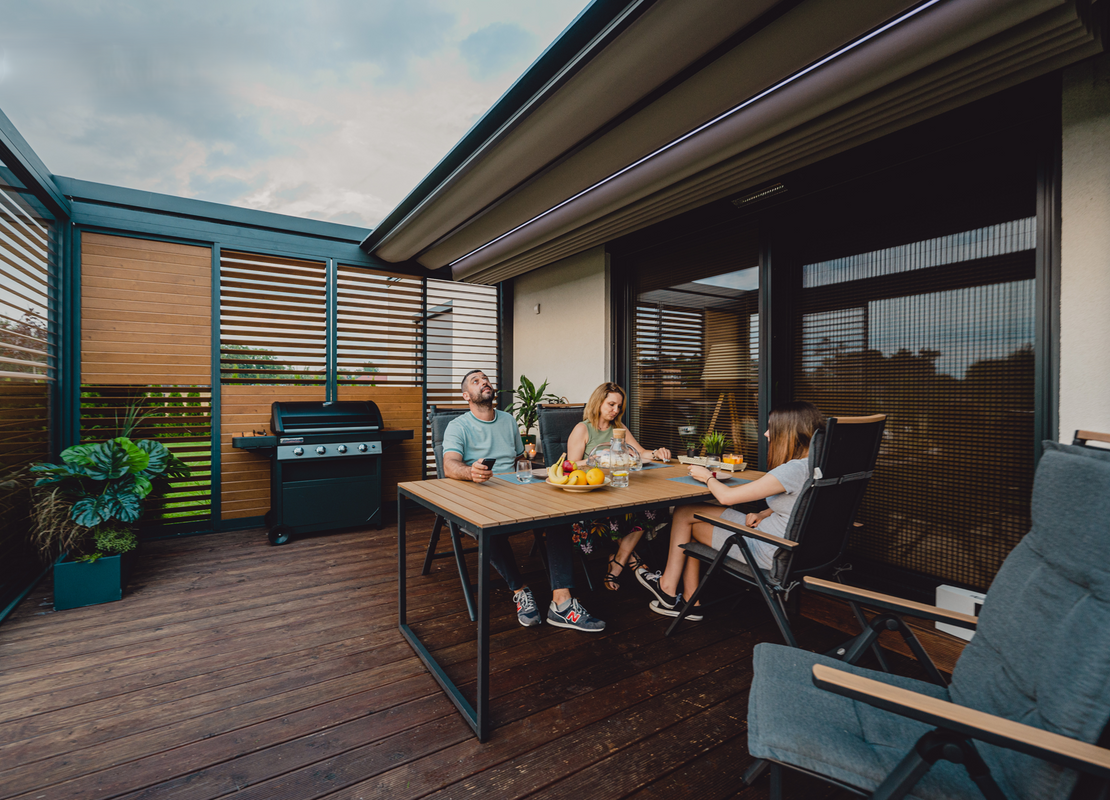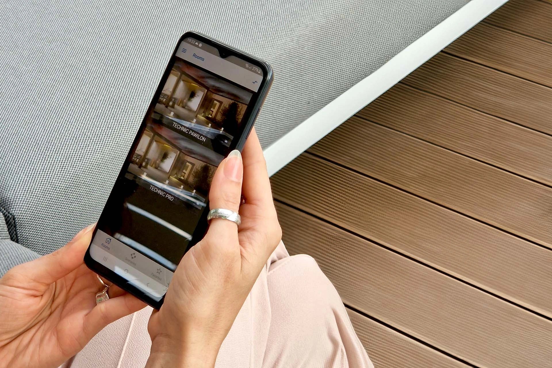 Mit der komfortablen Steuerung Ihrer Überdachung behalten Sie jederzeit die volle Kontrolle. Über Fernbedienung oder App können Sie die Dachposition, Beleuchtung, ZIP-Rollos, Heizstrahler und das Audiosystem steuern. Die Technik ist zuverlässig und leicht bedienbar, sodass Sie alle Funktionen Ihrer Überdachung optimal nutzen können. Speichern Sie individuelle Einstellungen und passen Sie die Ausstattung ganz nach Ihren Bedürfnissen an. So genießen Sie maximalen Komfort, volle Flexibilität und ein perfektes Outdoor-Erlebnis zu jeder Tages- und Jahreszeit.