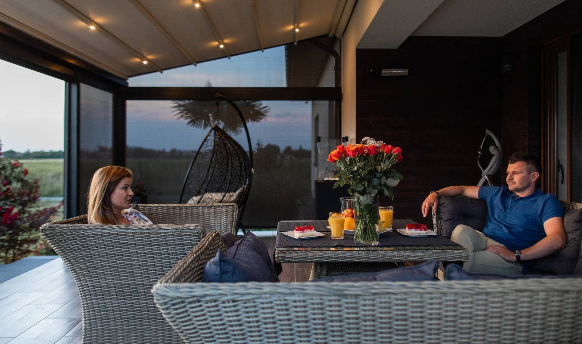 Elegancy Überdachungen verbinden elegantes Design, Langlebigkeit und maximale Flexibilität. Die robuste Aluminiumkonstruktion, der wetterfeste TechProtect-Stoff und das integrierte Rinnensystem schützen zuverlässig vor Sonne, Regen, Wind und UV-Strahlen. Extras wie Rollläden, Seitenverglasungen, Heizstrahler oder Beleuchtung sind optional verfügbar. Dank des modularen Systems lassen sich die Überdachungen individuell an Terrassen, Gartenflächen oder gewerbliche Außenbereiche anpassen – für komfortable, stilvolle und wetterfeste Outdoor-Räume von Frühling bis Herbst.