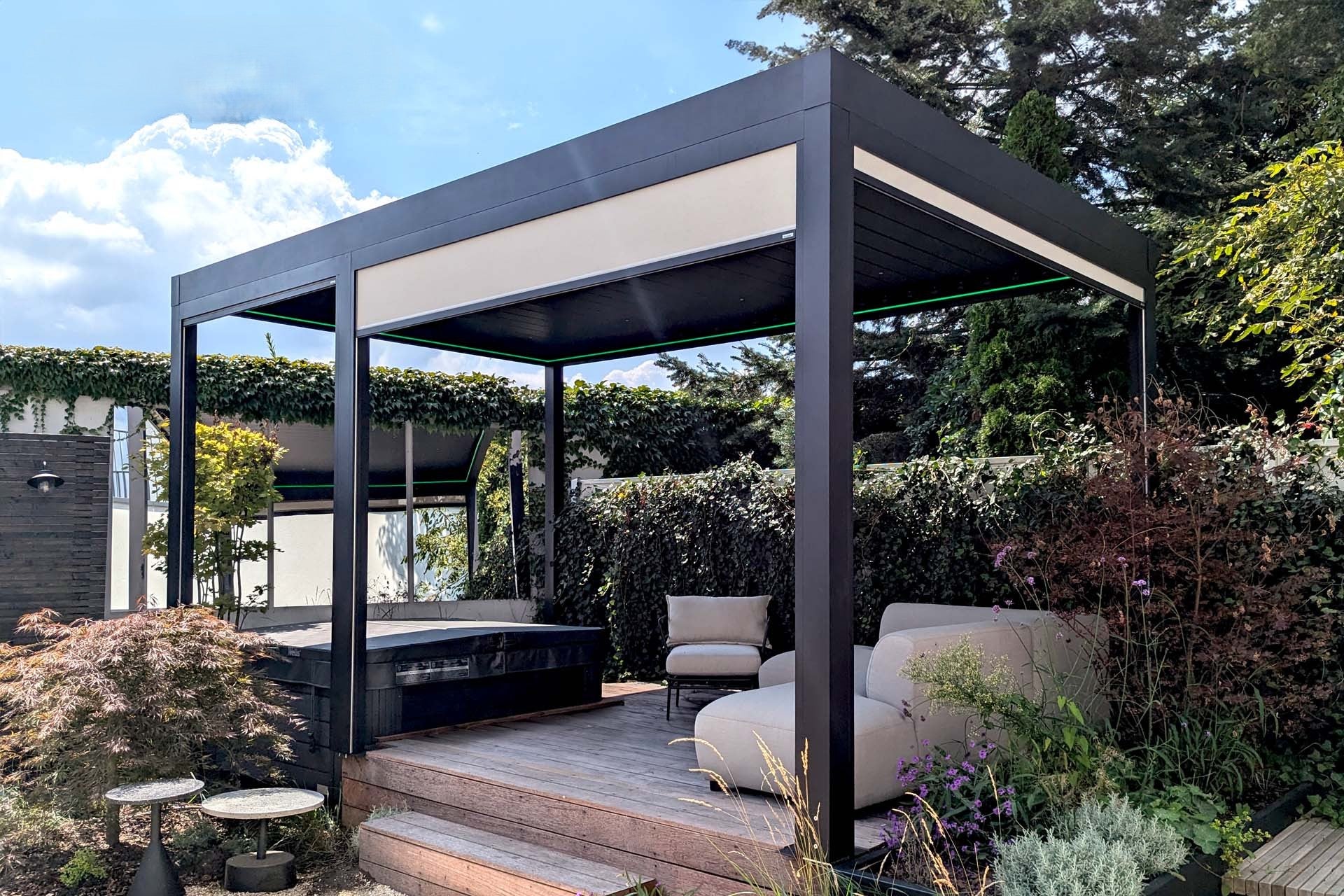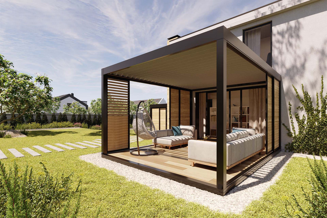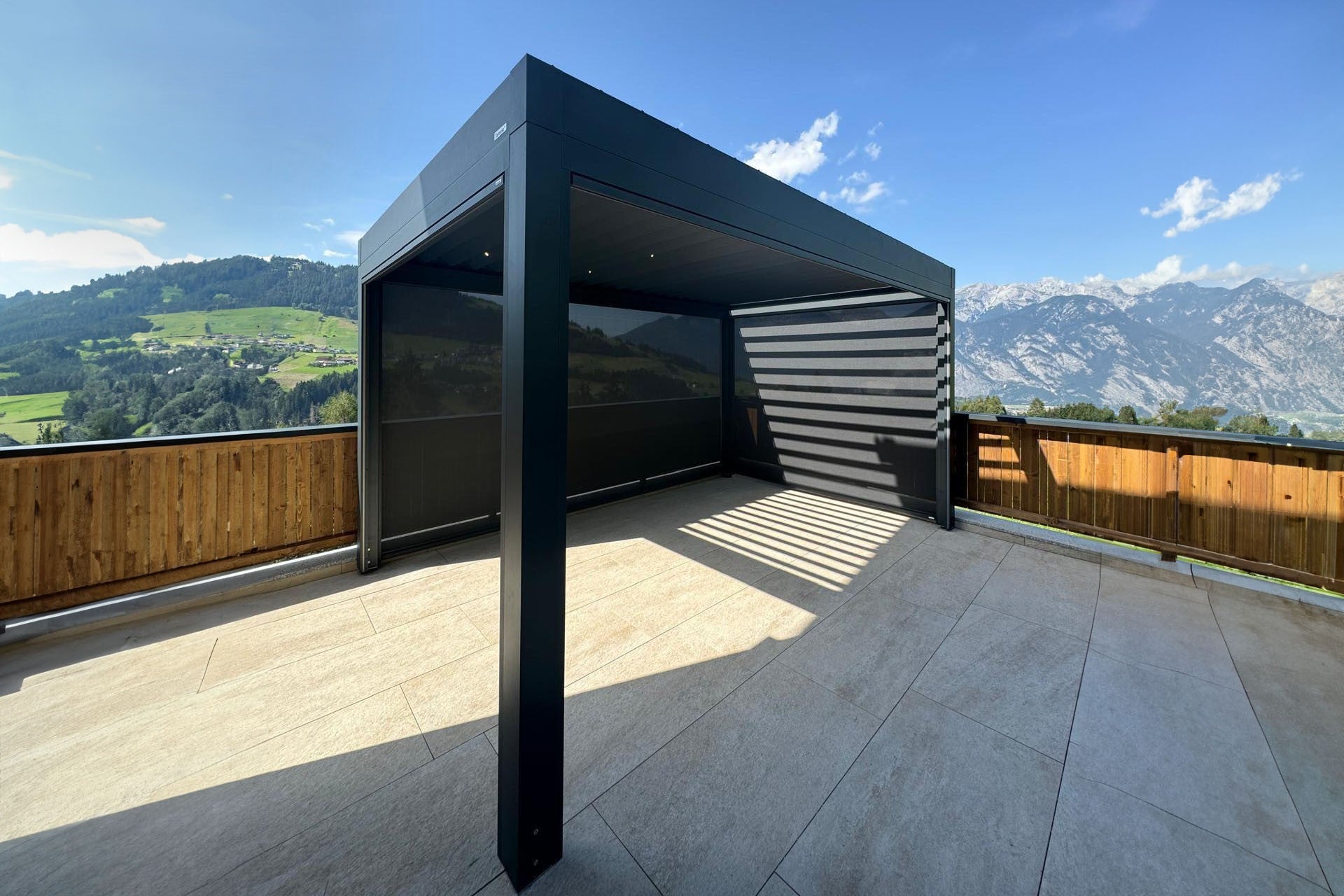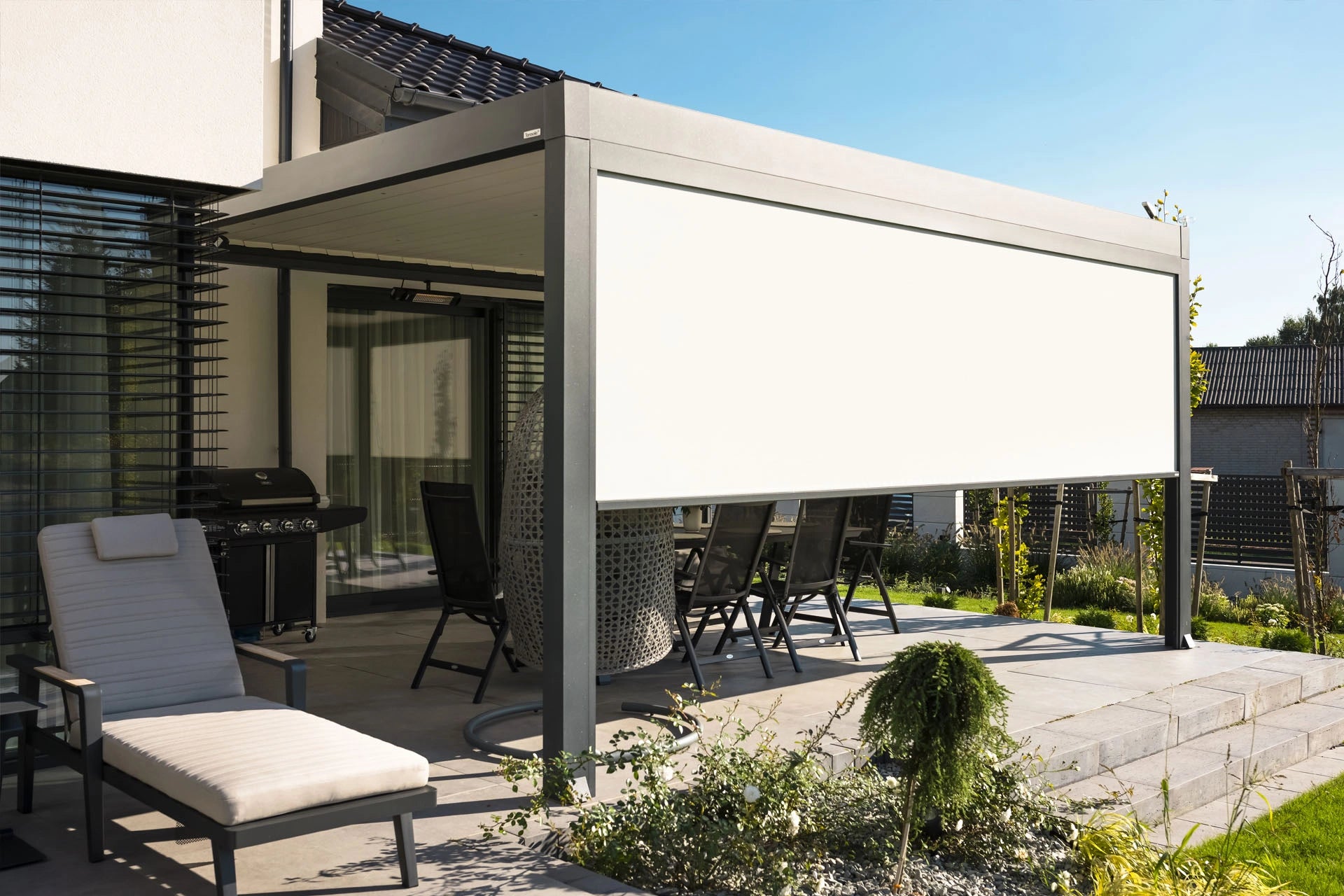 Auch in kompakter Ausführung überzeugt das Essential durch seine klare Linienführung und die hochwertige Bauweise. Optional lässt sich die Überdachung seitlich verglasen und verwandelt Ihre Terrasse so in einen geschützten, gemütlichen Außenraum. Ob als eleganter Pavillon im Garten oder als Wohnraumerweiterung – das Essential kombiniert Alltagstauglichkeit mit stilvoller Architektur und macht Ihre Terrasse zum optischen Highlight.