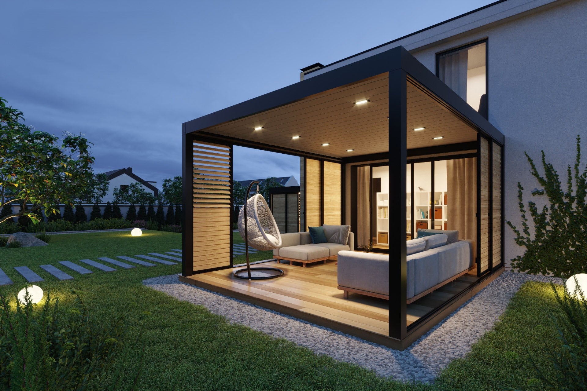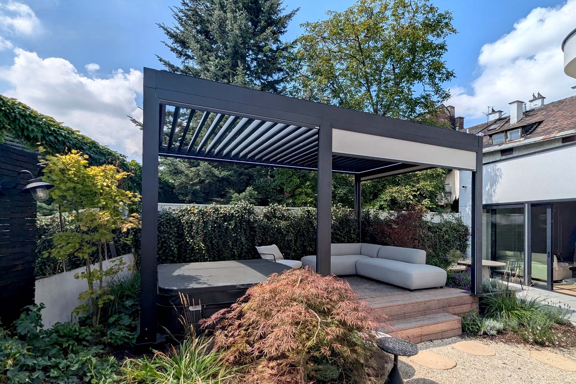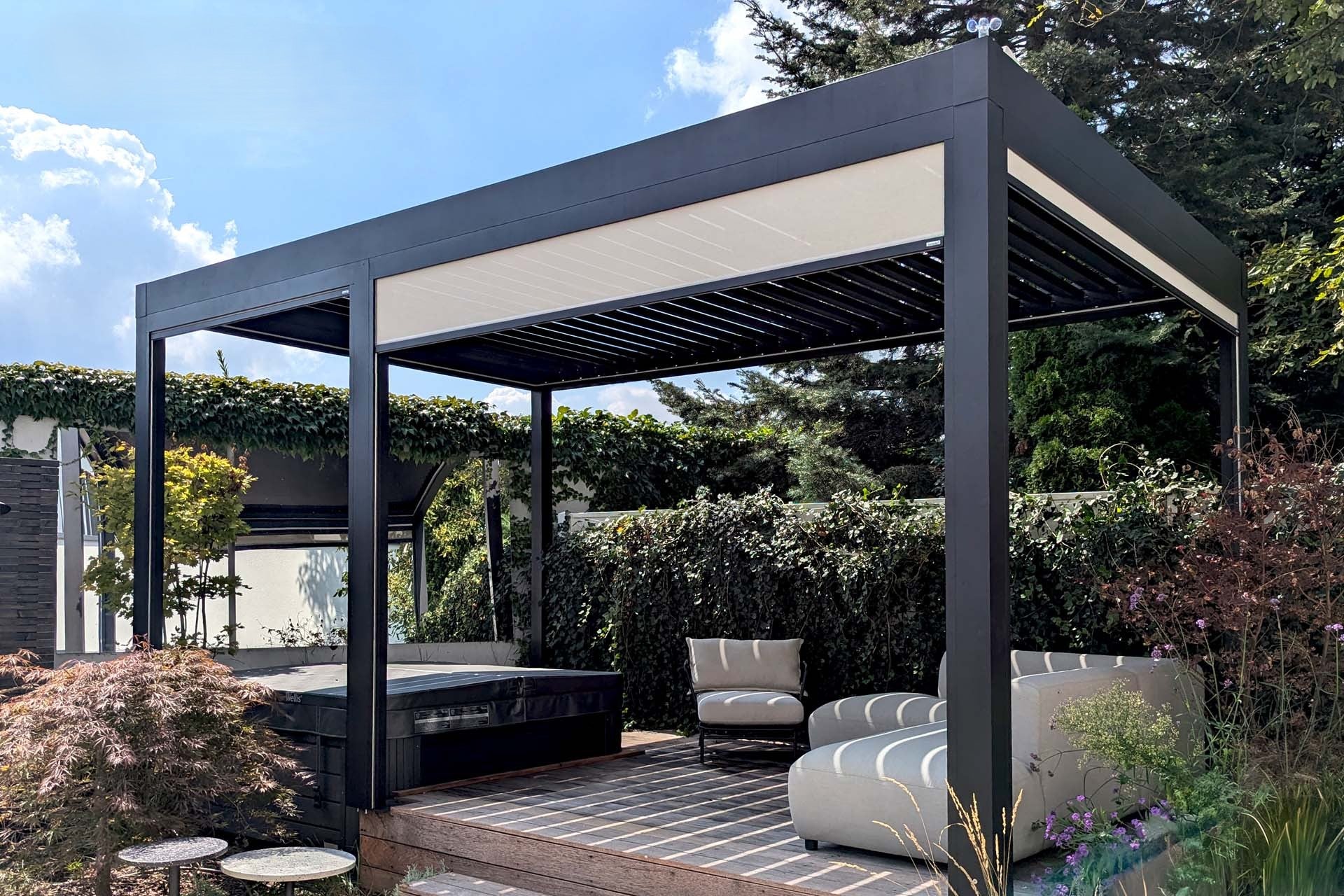 Auch in kompakter Ausführung überzeugt das Essential durch seine klare Linienführung und die hochwertige Bauweise. Optional lässt sich die Überdachung seitlich verglasen und verwandelt Ihre Terrasse so in einen geschützten, gemütlichen Außenraum. Ob als eleganter Pavillon im Garten oder als Wohnraumerweiterung – das Essential kombiniert Alltagstauglichkeit mit stilvoller Architektur und macht Ihre Terrasse zum optischen Highlight.