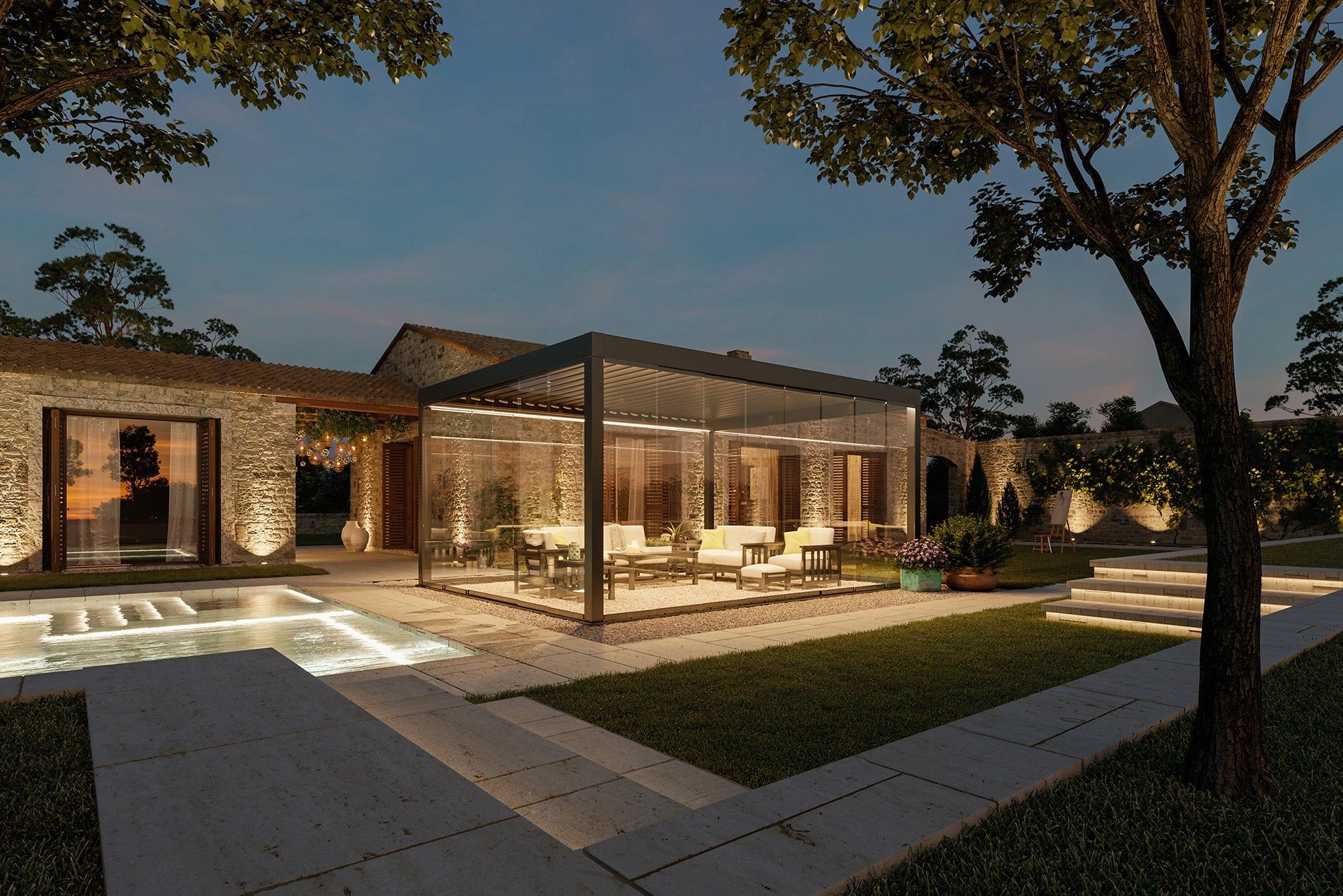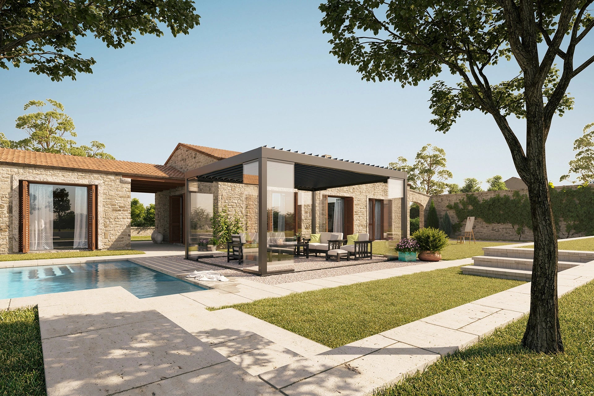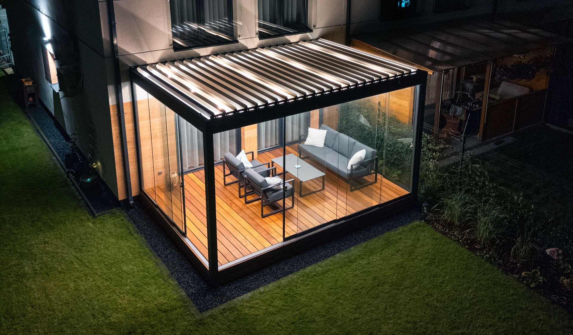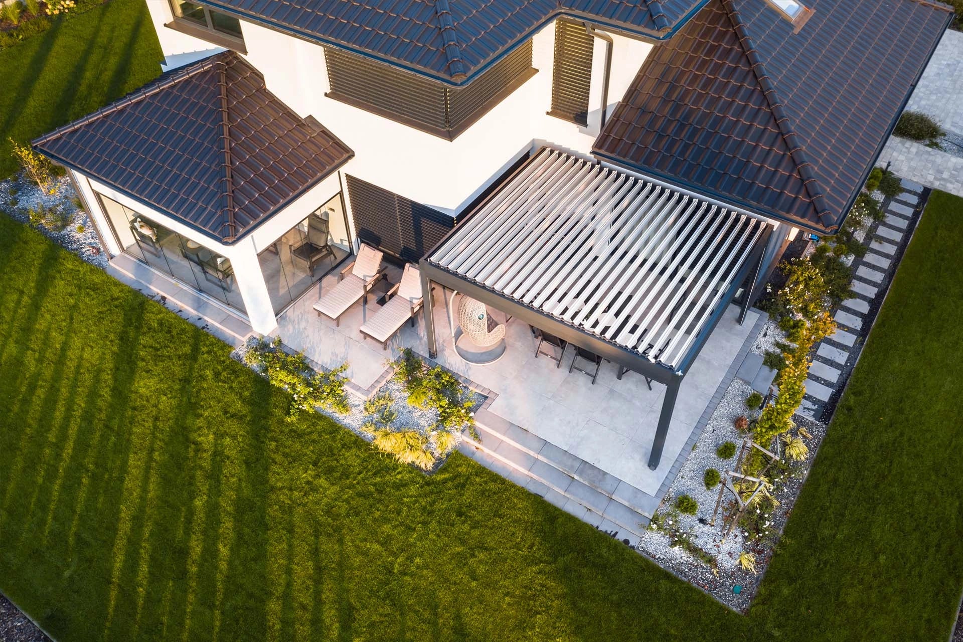 Auch in kompakter Ausführung überzeugt das Essential durch seine klare Linienführung und die hochwertige Bauweise. Optional lässt sich die Überdachung seitlich verglasen und verwandelt Ihre Terrasse so in einen geschützten, gemütlichen Außenraum. Ob als eleganter Pavillon im Garten oder als Wohnraumerweiterung – das Essential kombiniert Alltagstauglichkeit mit stilvoller Architektur und macht Ihre Terrasse zum optischen Highlight.