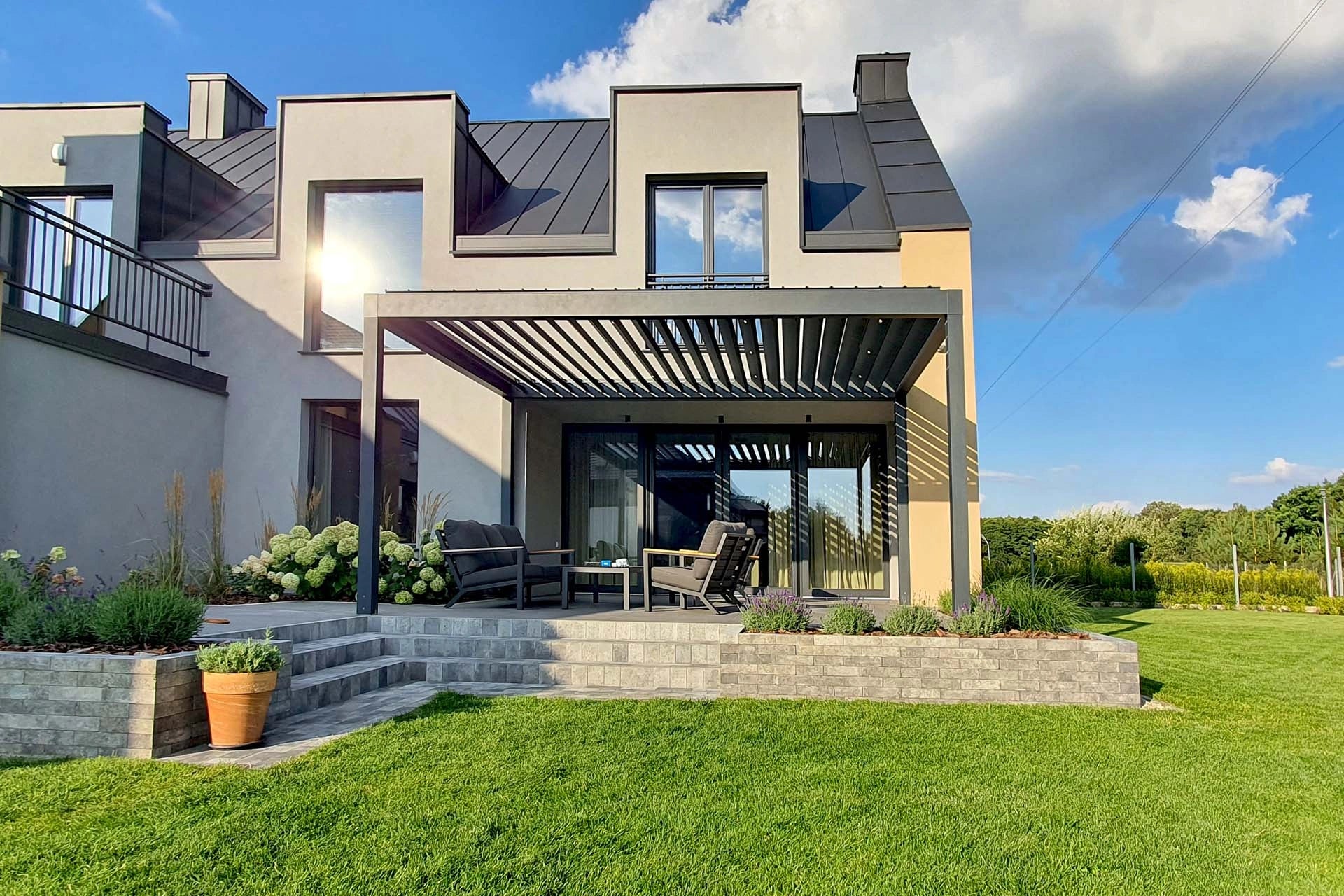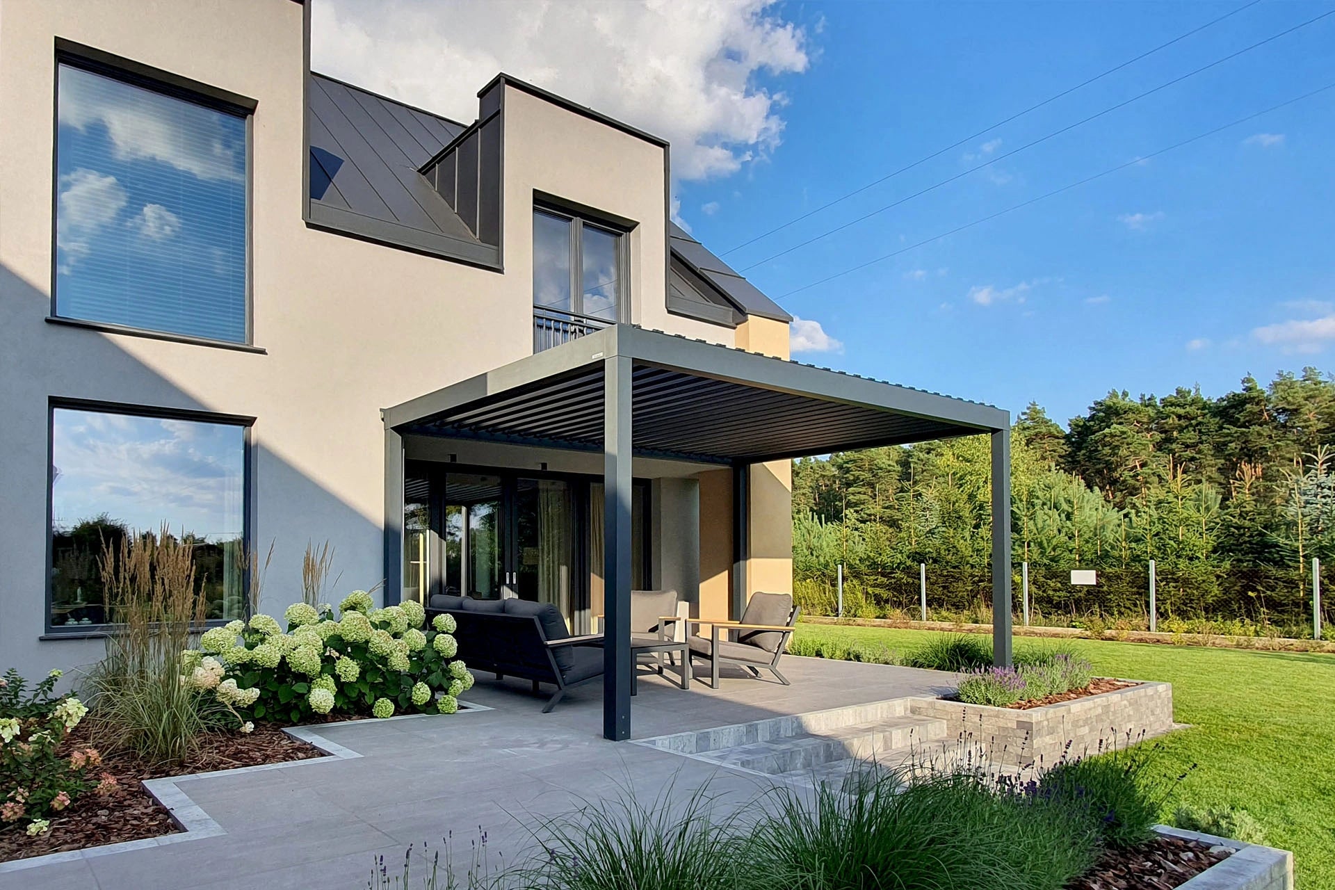 Das Essential Lamellendach ist die smarte Alternative zum Technic-Modell und überzeugt durch sein schlankes, elegantes Design. Ideal für kleinere bis mittelgroße Terrassen, Balkone oder Gärten, bietet es dennoch alle wichtigen Funktionen: drehbare Lamellen von 0–135 Grad, zuverlässigen Sonnen- und Regenschutz sowie ein integriertes Wasserableitungssystem. Damit entsteht ein moderner Outdoor-Bereich, der sich harmonisch in jede Architektur einfügt und Ihren Wohnraum stilvoll erweitert.