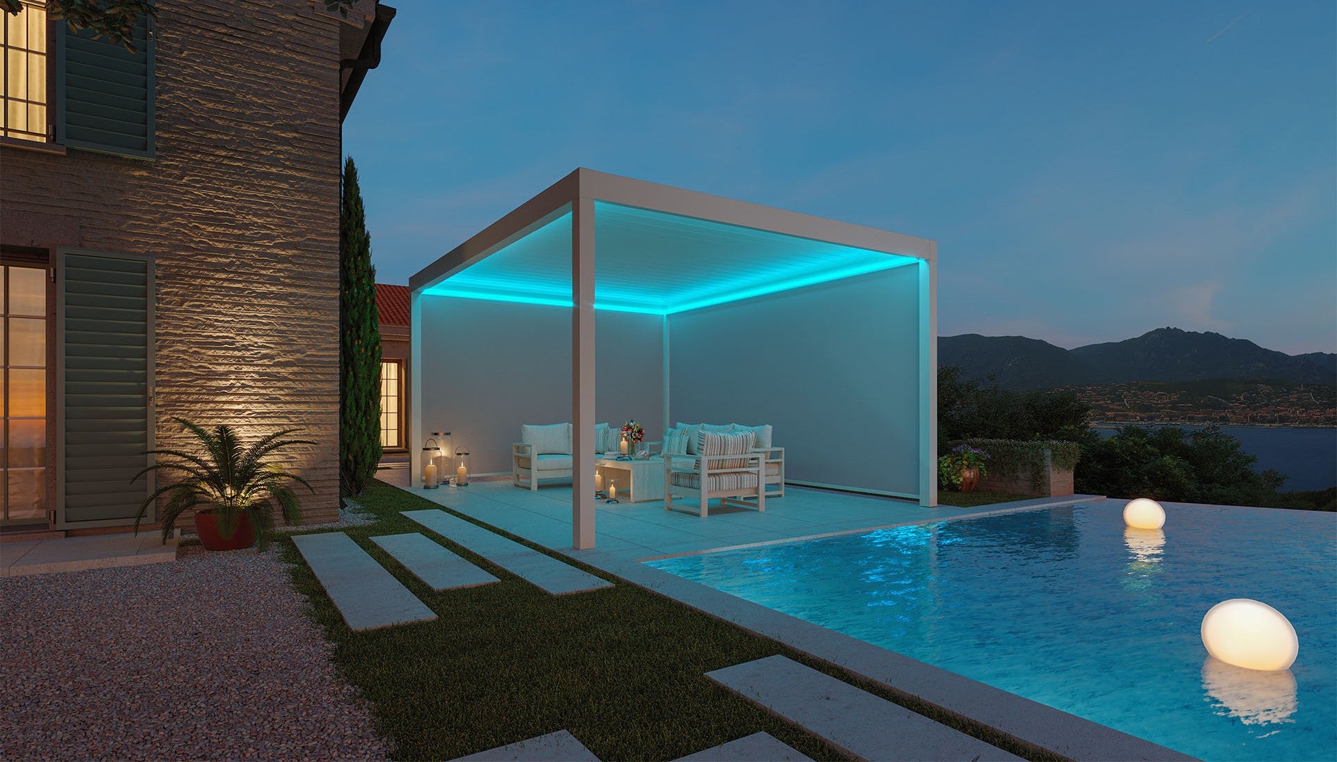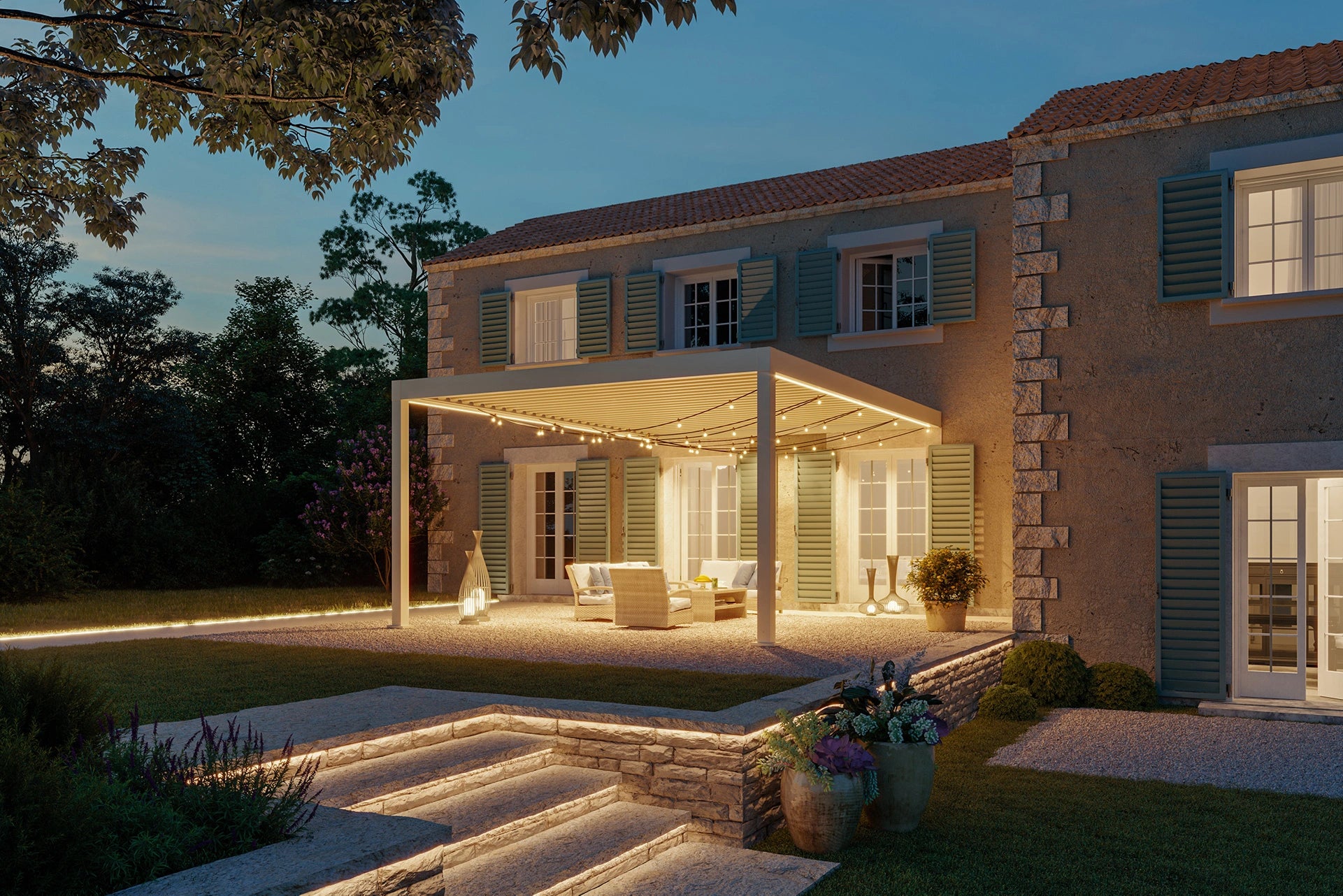 Die Steuerung erfolgt komfortabel per Fernbedienung oder mobiler App – so bestimmen Sie jederzeit die perfekte Atmosphäre auf Ihrer Terrasse. Gefertigt aus 100 % hochwertigem Aluminium, ist das Essential Lamellendach besonders robust, pflegeleicht und langlebig. Das integrierte Wasserableitungssystem sorgt dafür, dass Regen zuverlässig abgeleitet wird, während die präzise gefertigten Lamellen optimalen Schutz und Komfort garantieren. Eine Investition, die Ihnen viele Jahre Freude bereitet.