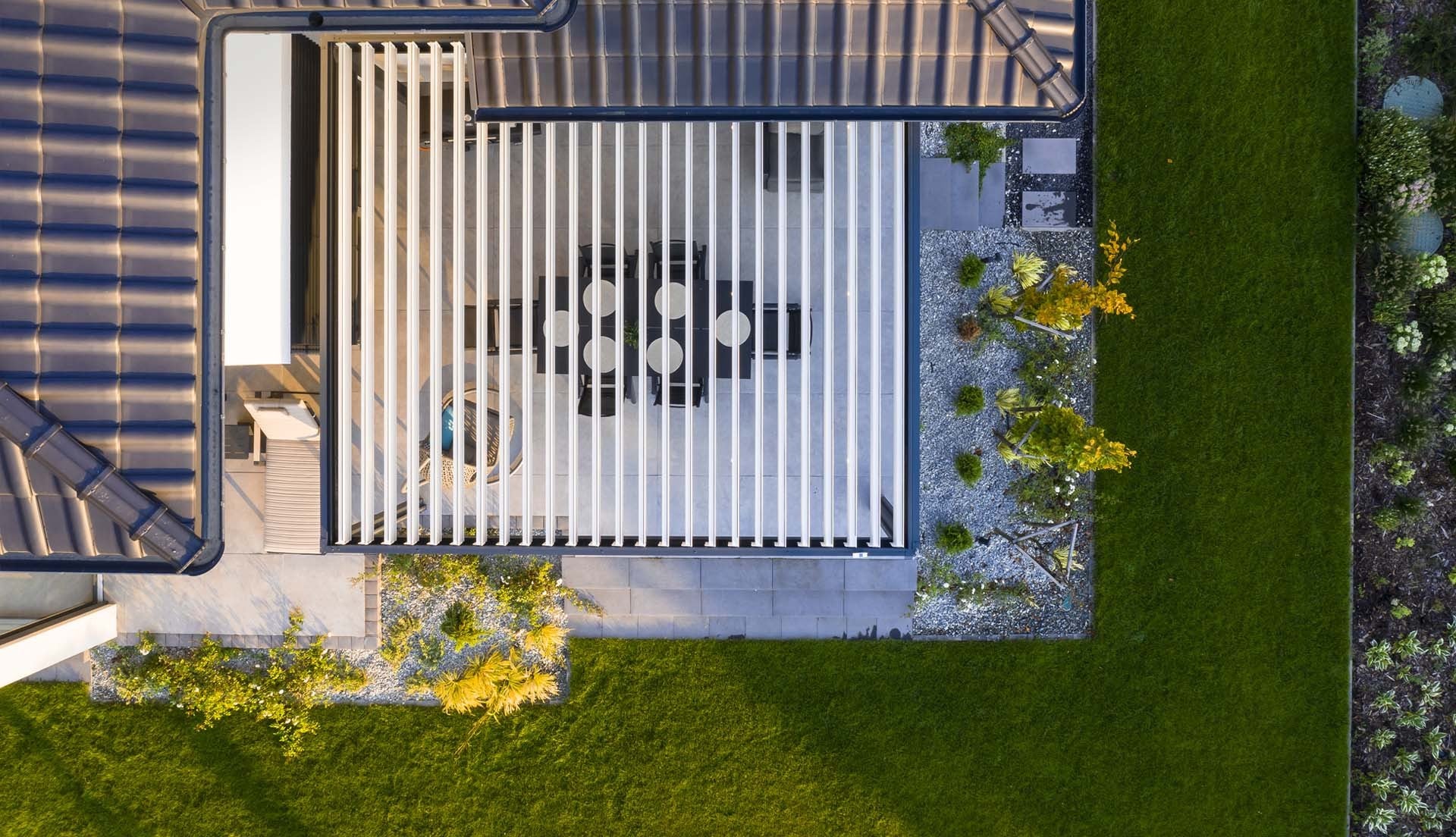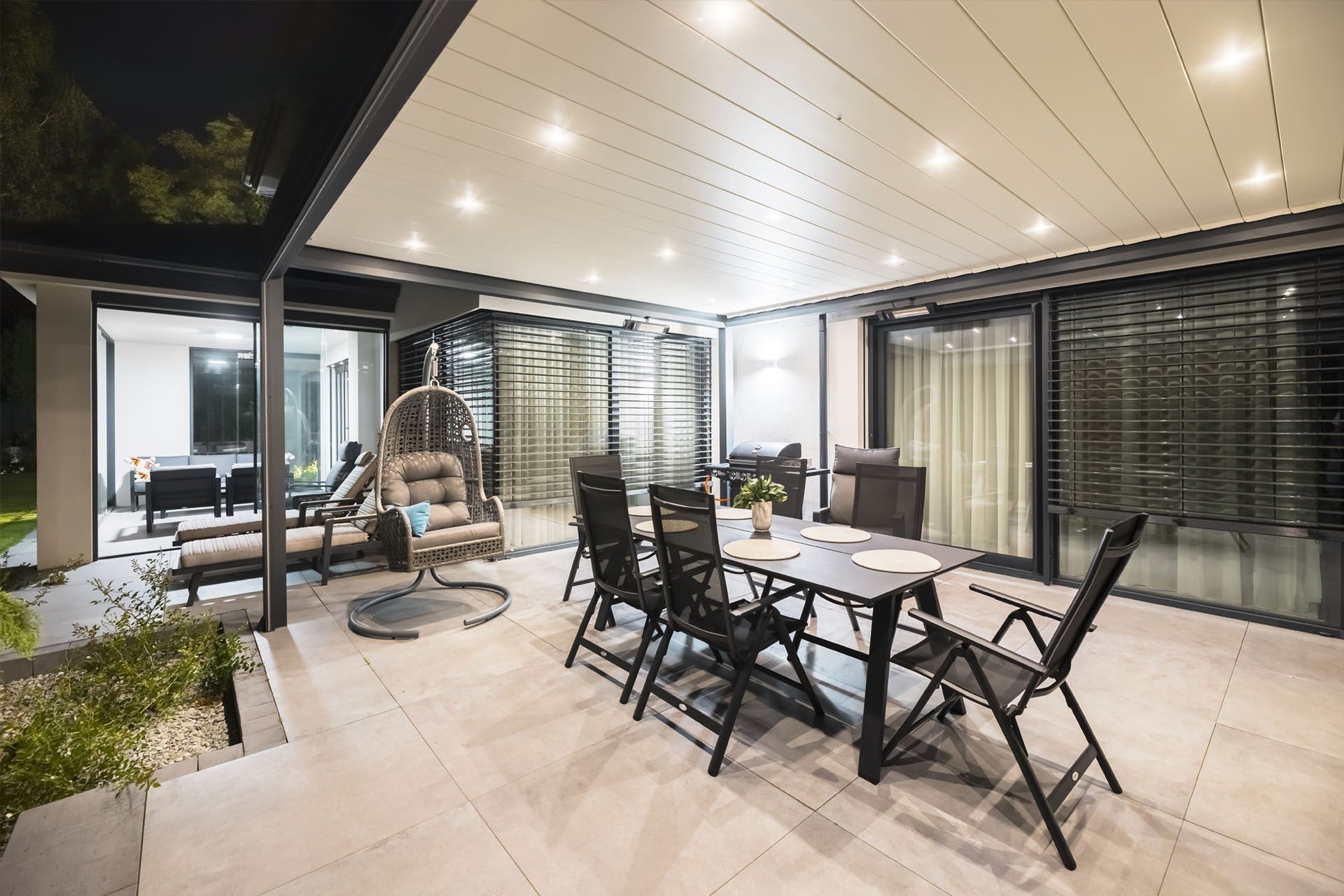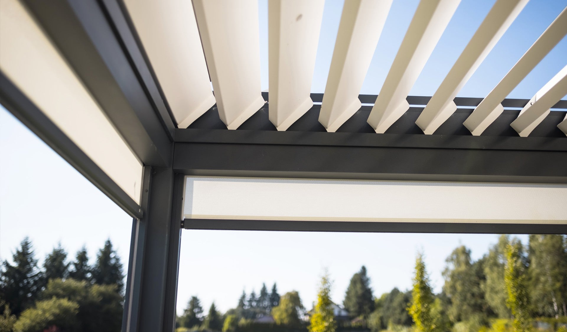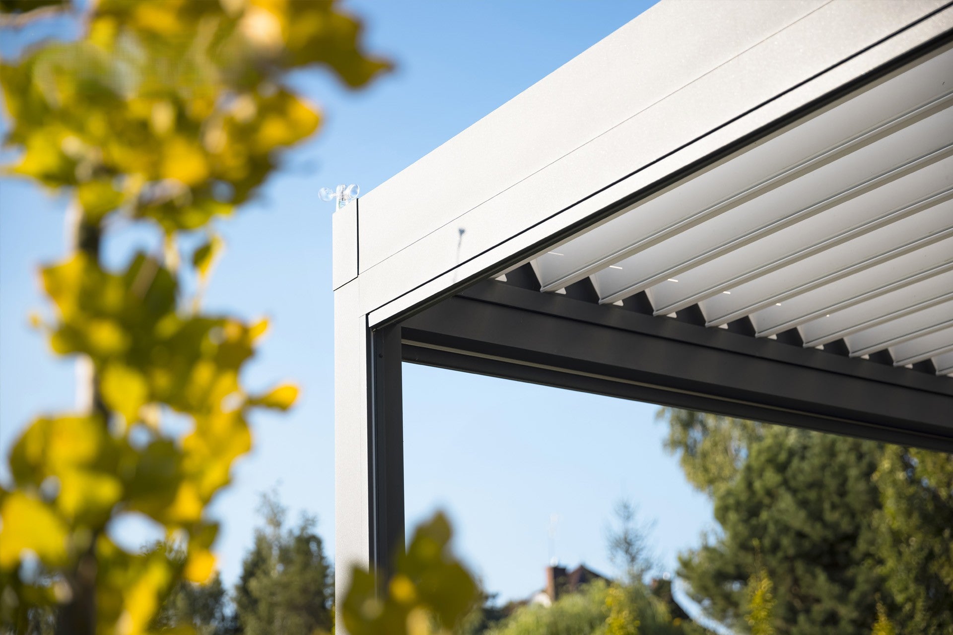 Dank der flexiblen Lamellensteuerung genießen Sie jederzeit die gewünschte Licht- und Schattenregulierung. Geschlossen schützt das Dach zuverlässig vor Regen und Schnee, während geöffnete Lamellen für frische Luft und angenehme Kühlung sorgen. Die stabile Aluminium-Konstruktion hält Windgeschwindigkeiten bis 120 km/h stand und macht das Essential Lamellendach zu einem sicheren Rückzugsort – unabhängig von den Wetterbedingungen.