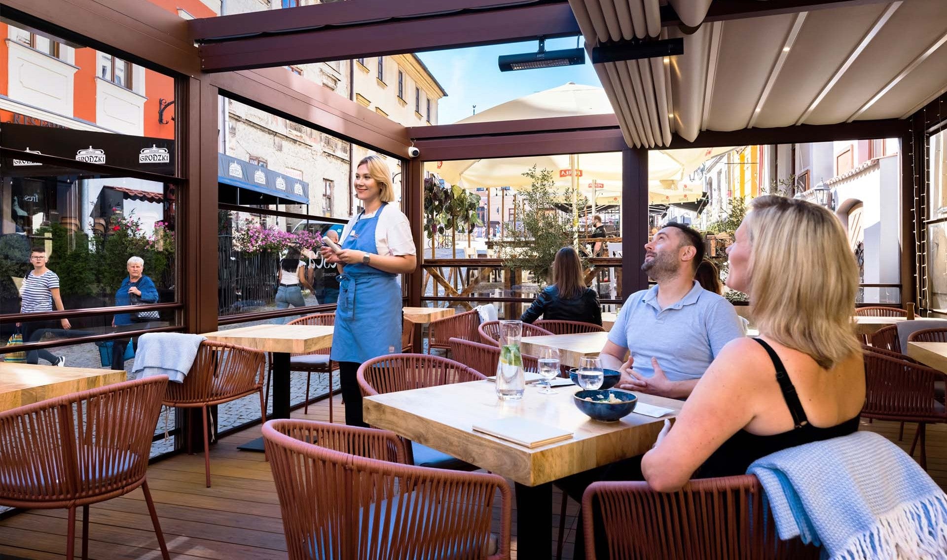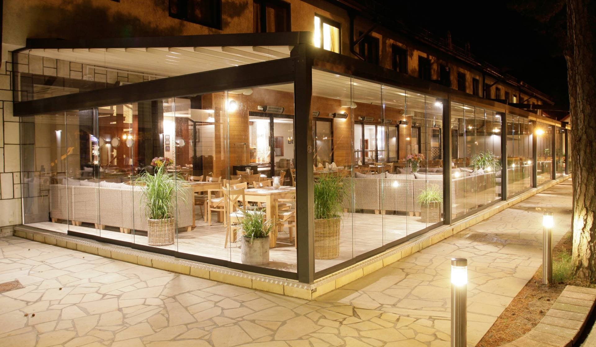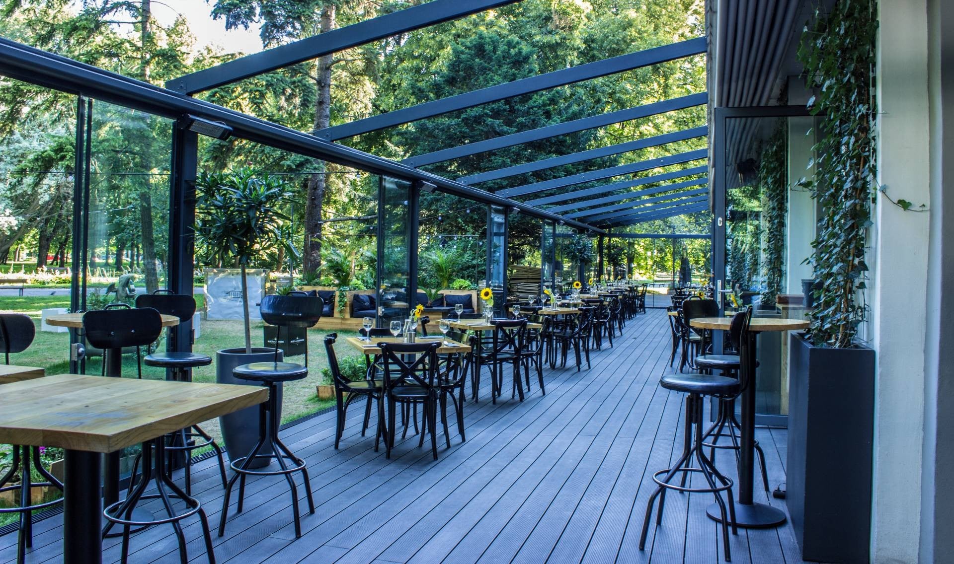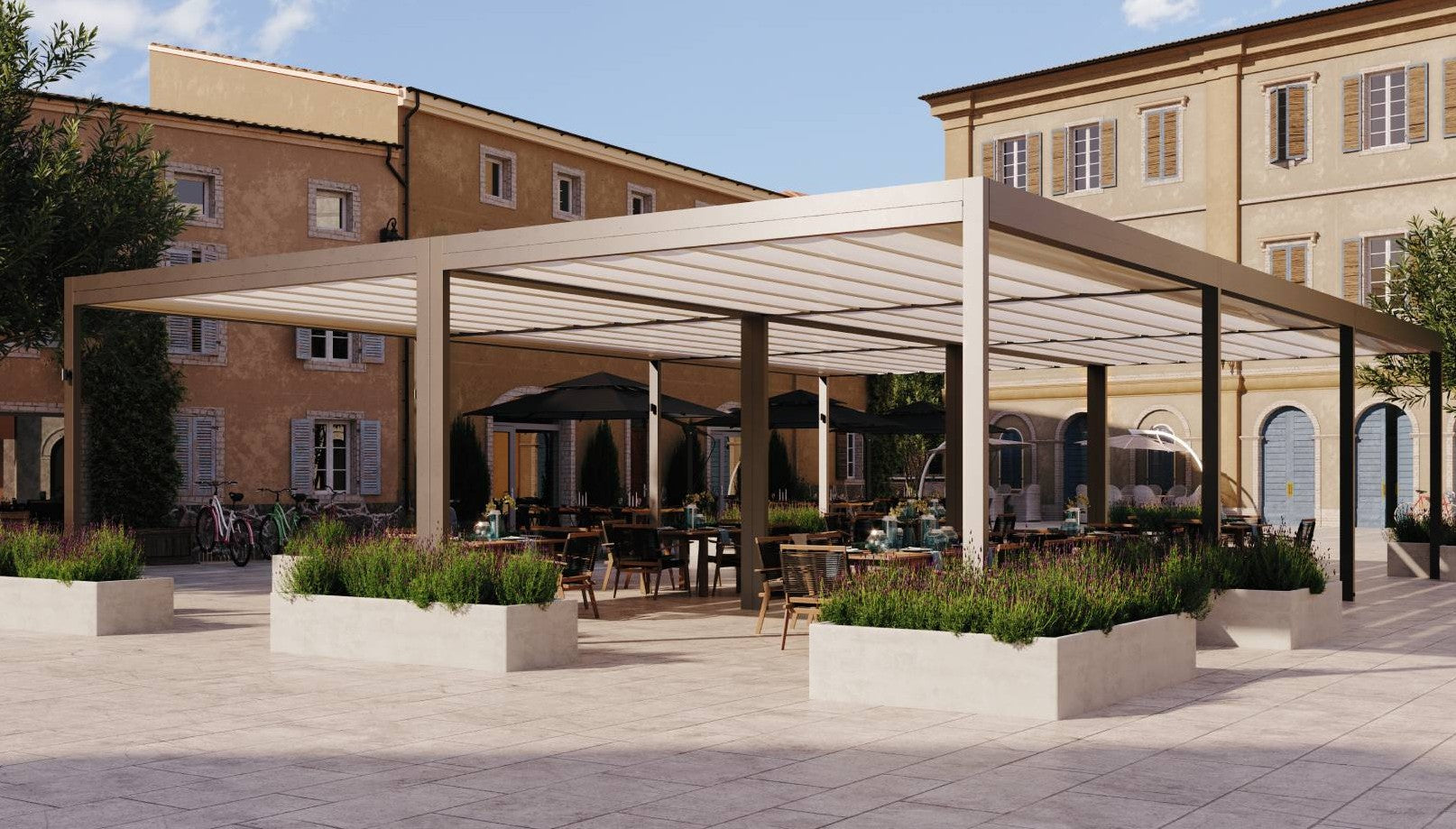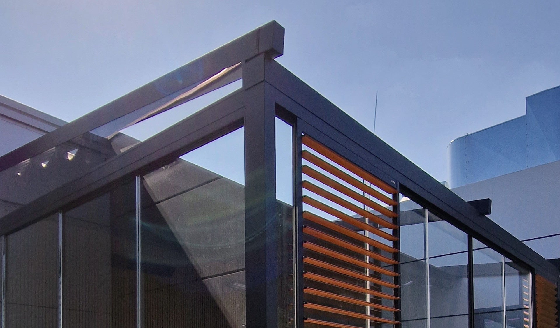 Die ProLine Überdachung ist die perfekte Lösung für gewerbliche Außenbereiche wie Restaurants, Hotels, Cafés oder Eventflächen.