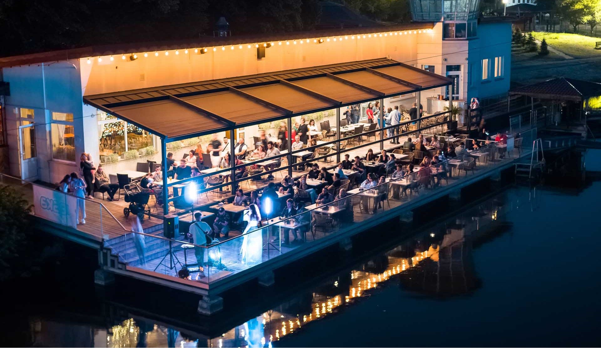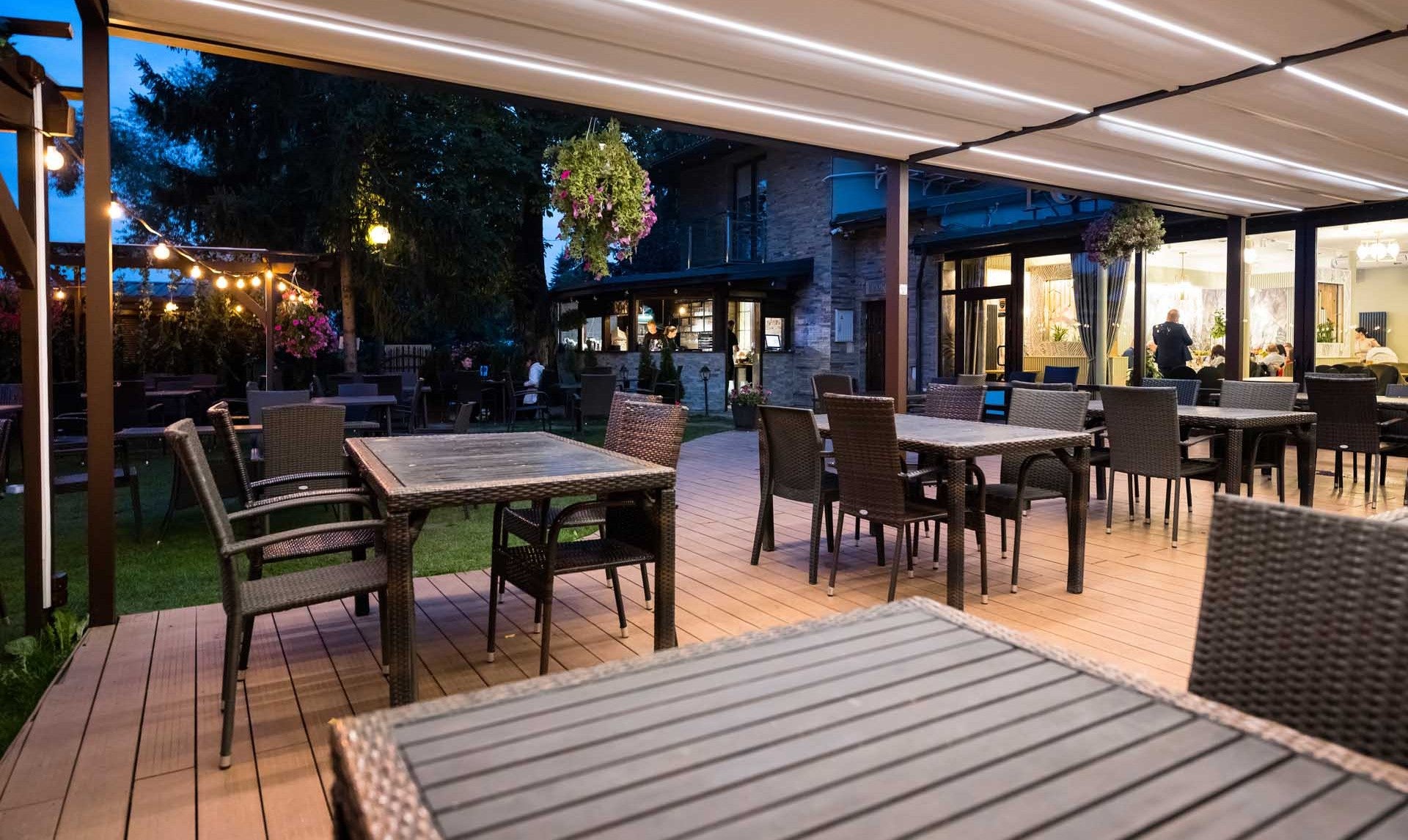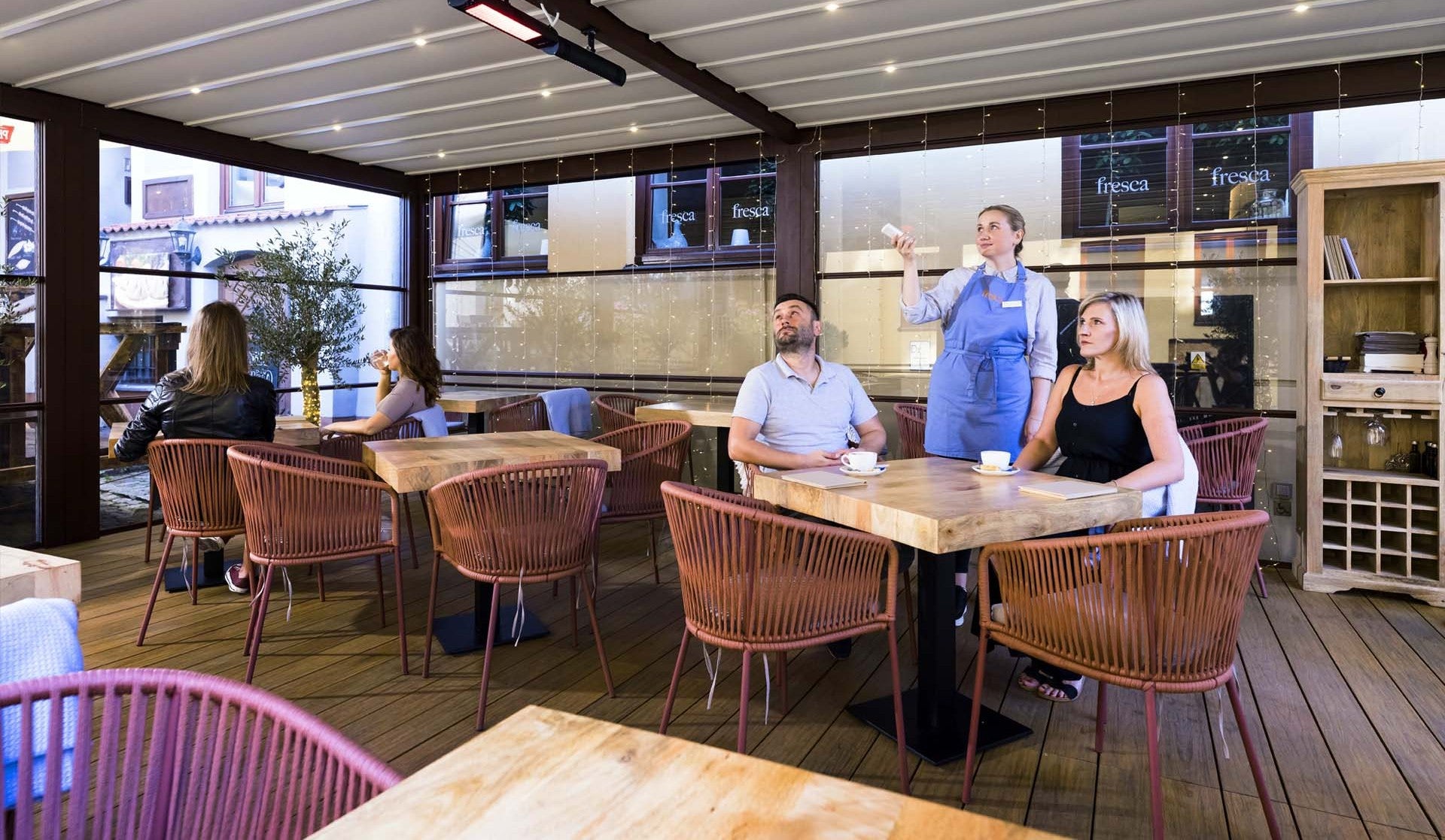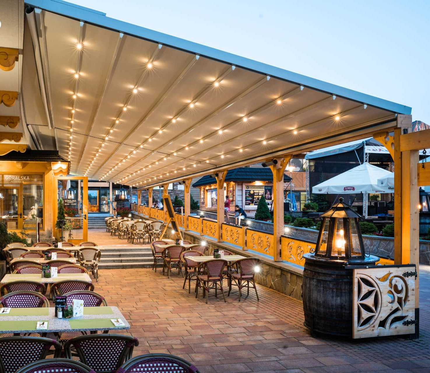 Die ProLine Überdachung ist die perfekte Lösung für gewerbliche Außenbereiche wie Restaurants, Hotels, Cafés oder Eventflächen.