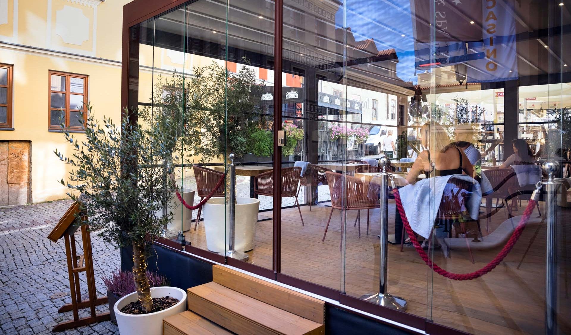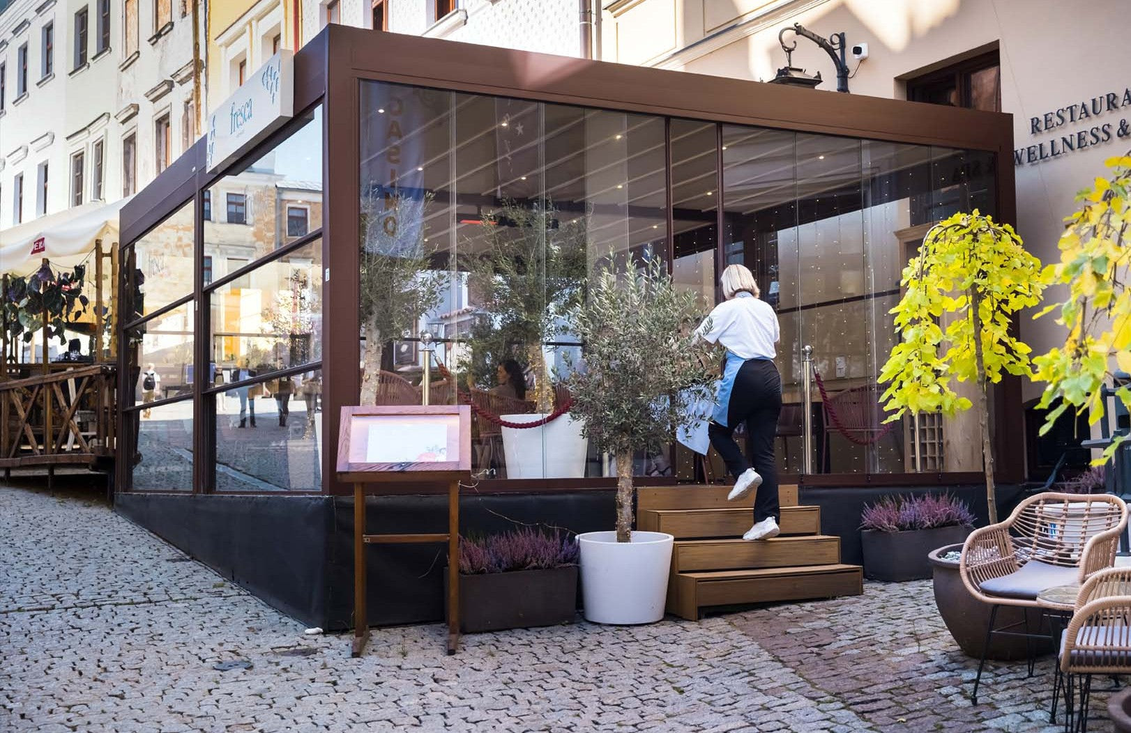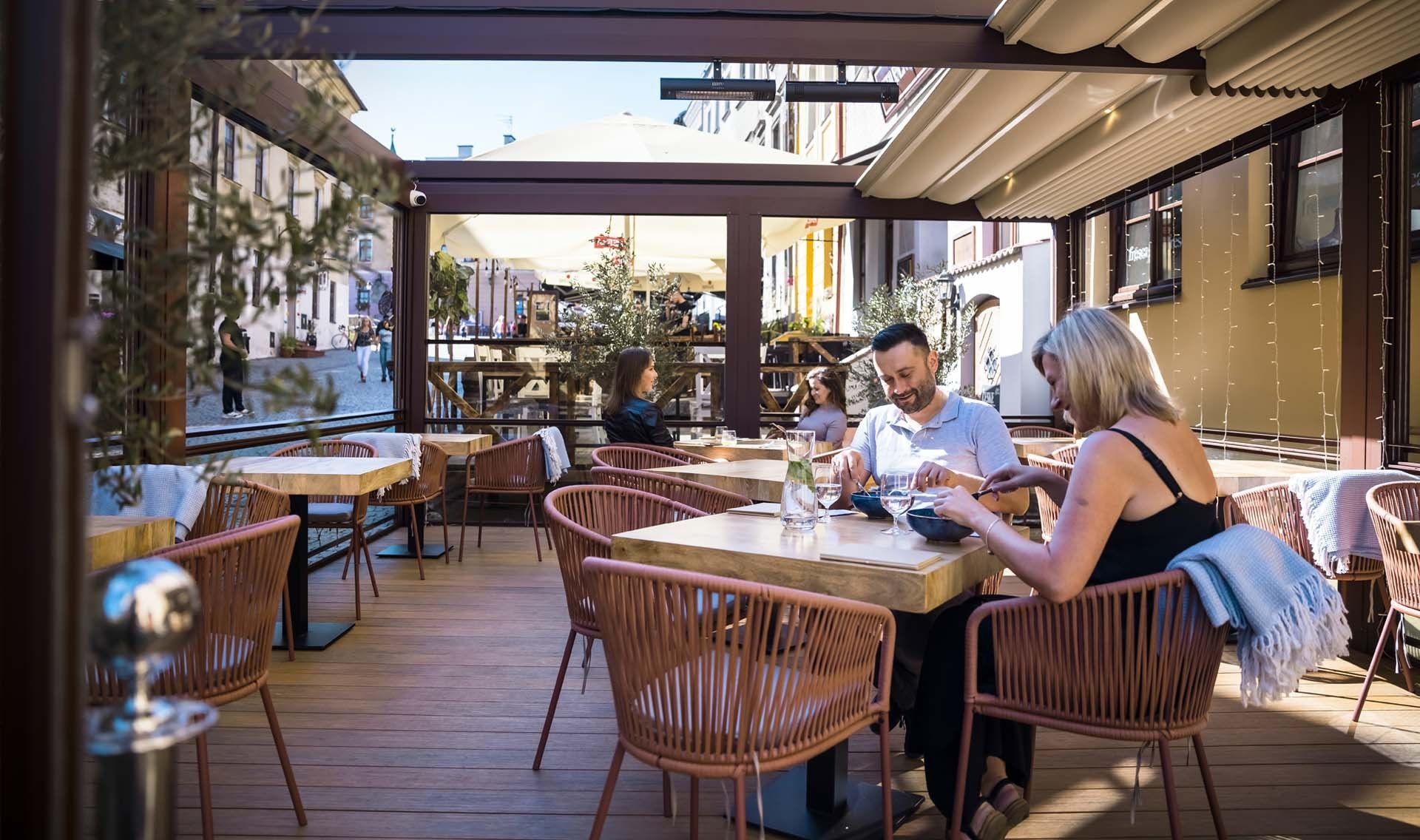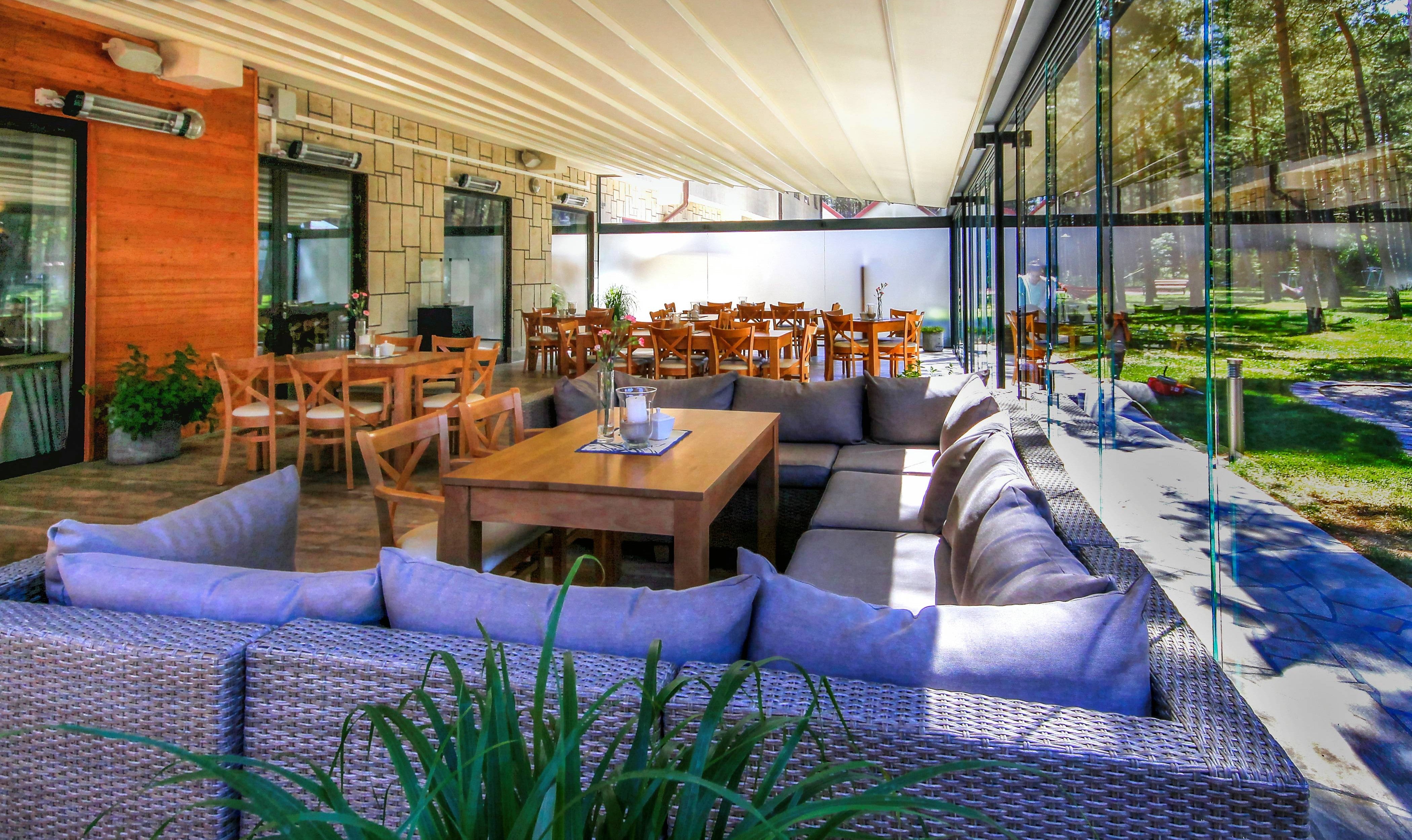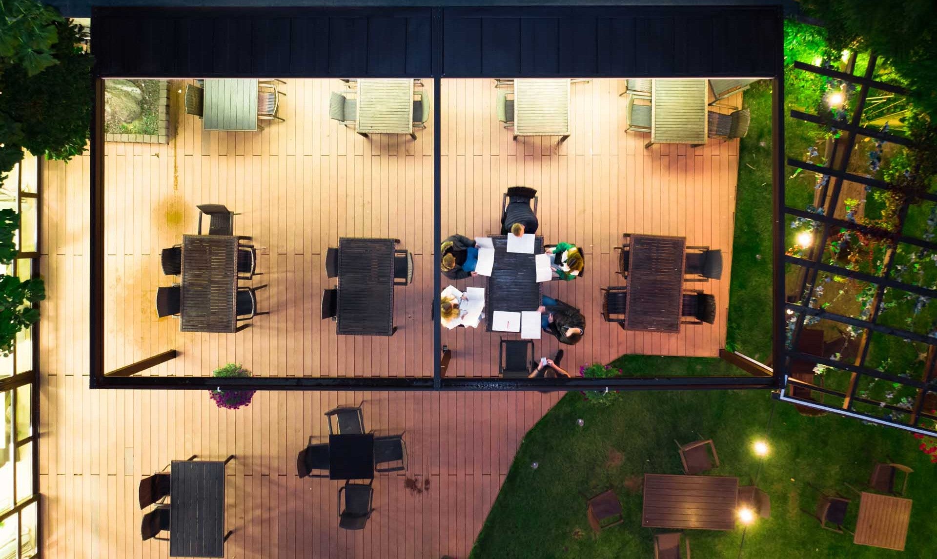 Die ProLine Überdachung ist die perfekte Lösung für gewerbliche Außenbereiche wie Restaurants, Hotels, Cafés oder Eventflächen.
